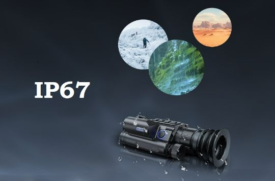 Прицел работает от съёмного аккумулятора 21700 (5000 мА·ч), время работы — до 6 часов. Батарейный отсек открывается отдельной кнопкой — замена аккумулятора занимает секунды, даже в перчатках.